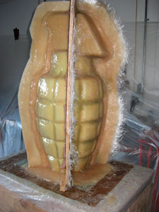 bottom of feet & grenade. Begin sanding seams.