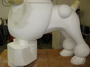 from large (4' X 4' X 8') Styrofoam blocks glued together.